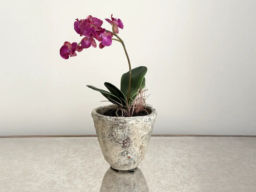 Mini Magenta Phalaenopsis Orchid in an Aged Terracotta Pot