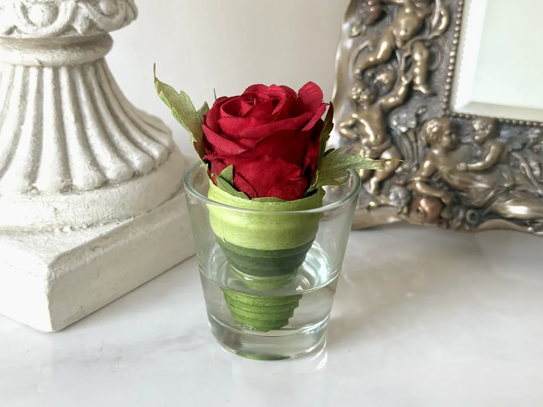 Our Rose Water Collection features timeless roses in glass vessels with a water illusion, perfect for affection or beauty. No.7 Red Bud offers classic elegance with a romantic touch.